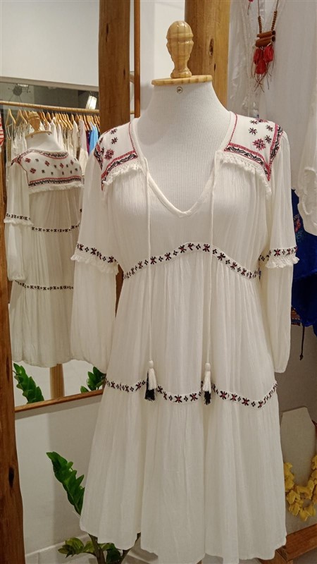 Vestido manga boho bordado